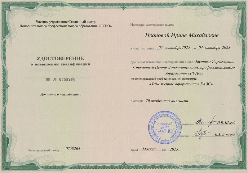 Тема №13. Практическая работа по курсу «Таможенное оформление в ЕАЭС»