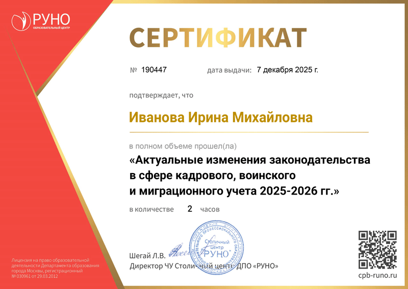 Лекция №8: Изменения в ведении воинского учета Лекция №9: Отзыв из отпуска работников предприятий гособоронзаказов Лекция №10: Новый порядок вручения повесток. Отчетность в военкомат Лекция №11: Новые правила бронирования граждан с 21.03.2025 Лекция №12: Ответы на вопросы по изменениям в кадровом и воинском учетах