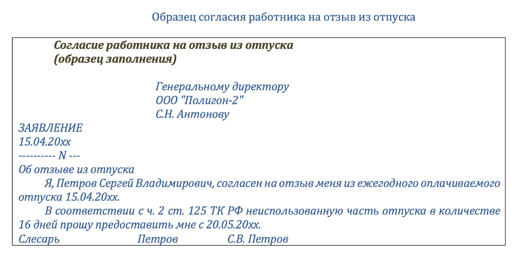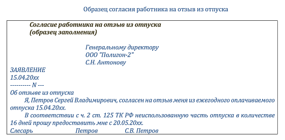 Шаг 1. Получение согласия работника на отзыв из ежегодного основного оплачиваемого отпуска