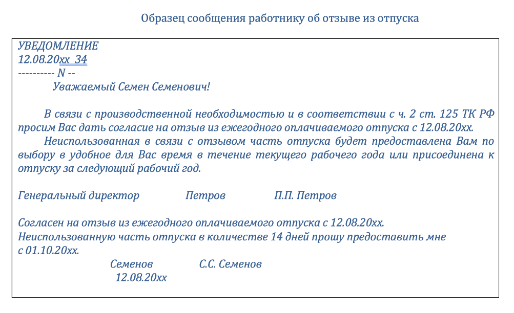 В некоторых случаях обстоятельства требуют присутствия на рабочем месте сотрудника, который находится в очередном отпуске.
